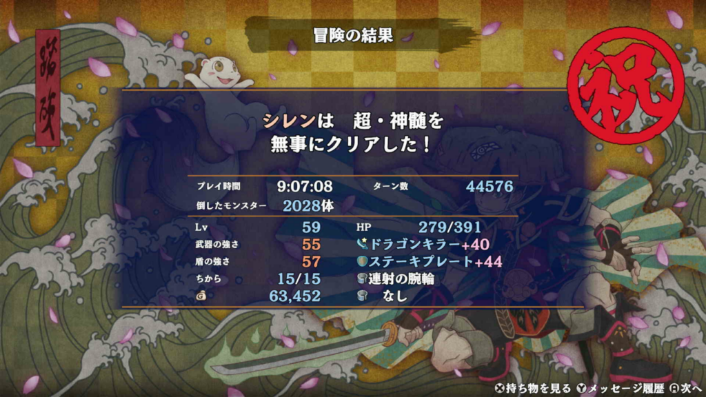 シレン6は低難易度だと思って舐めていましたが、やはり面白く最高のゲームとなりました。