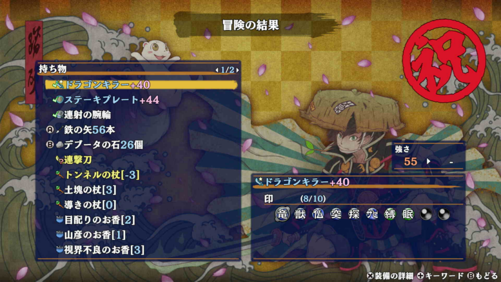 呪い避けも地味に活躍しましたが、チドロ階では「錆避け」が大活躍しています。