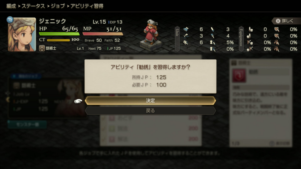 「勧誘」は話術師がJP100で取得できます。